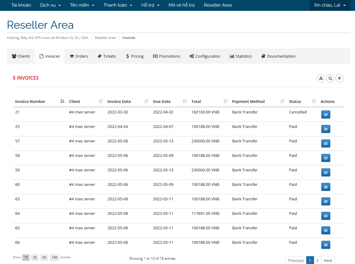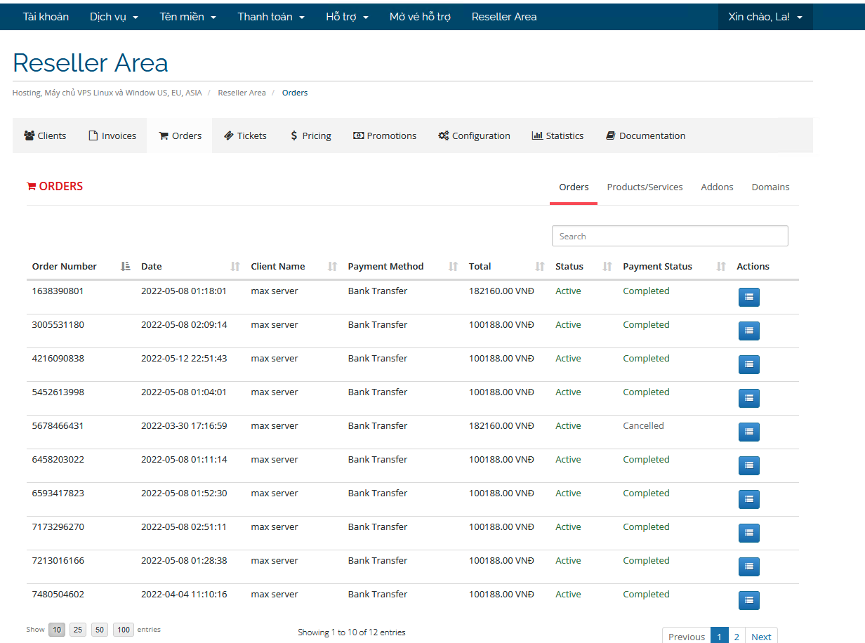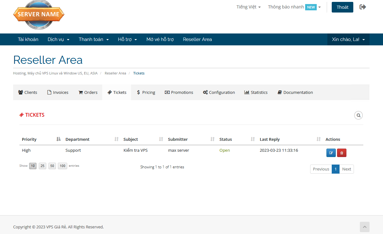 Có hệ thống quản lý và site bán hàng riêng với thương hiệu riêng của bạn (White Label). Đại lý tự quyết định giá bán và thương hiệu của mình. Hình thức hợp tác theo mô hình Đại lý Kinh Doanh của MaxServer phù hợp với các đối tác là đơn vị thiết kế web hoặc các tổ chức, hoặc cá nhân có nhu cầu sử dụng nhiều dịch vụ với mức ưu đãi đặc biệt.