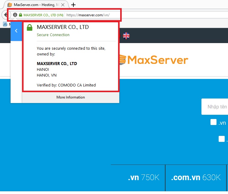 Extended Validation (EV) : cho khách hàng của bạn thấy Website đang sử dụng chứng thư SSL có độ bảo mật cao nhất và được rà soát pháp lý kỹ càng với thanh đại chỉ sáng màu xanh, hiển thị đầy đủ thông tin của công ty, cung cấp một cấp độ cao hơn tin tưởng vào website của bạn.